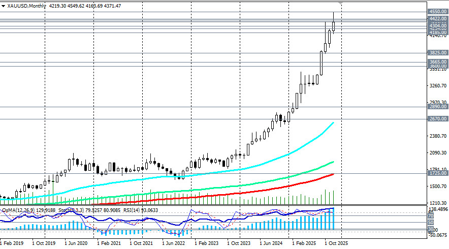 После вчерашнего обвала на фоне широкой фиксации прибыли и перераспределению позиций сегодня пара XAU/USD восстанавливается, понемногу отыгрывая вчерашнее падение. На текущий момент и в начале американской торговой сессии XAU/USD торгуется вблизи отметки 4381.00, тестируя максимумы октября на пробой. В то же время, активность остаётся низкой: большинство инвесторов готовятся к новогодним торгам и не спешат открывать новые позиции, отметили мы в нашем сегодняшнем фундаментальном анализе и обзоре «XAU/USD: фиксация прибыли и коррекция рынка драгметаллов». Если рост цены продолжится, то ближайшей