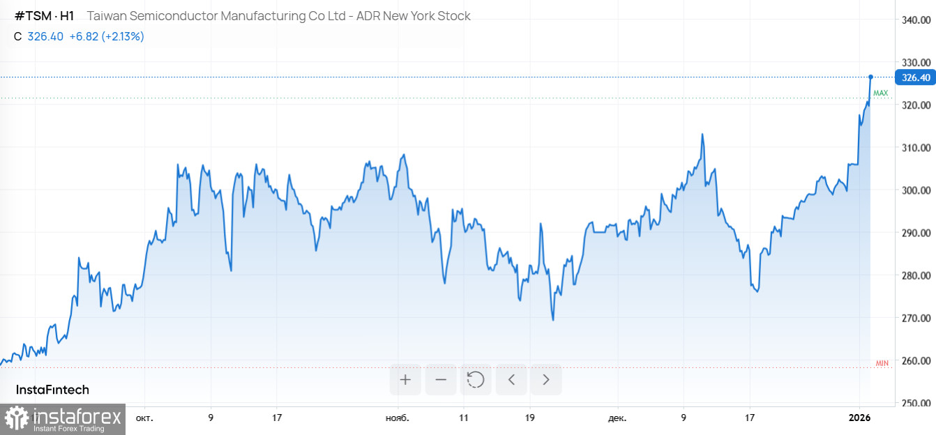 3 января 2024 года Taiwan Semiconductor Manufacturing Company (TSMC) установила исторический рекорд: ее акции взлетели на 5,17%, закрывшись на отметке $319,61, а рыночная капитализация превысила $1,657 трлн. Это позволило крупнейшему в мире контрактному производителю полупроводников обогнать такие титаны, как Meta Platforms и Broadcom, выйдя на шестую строчку среди самых дорогих компаний планеты. Рост цен на бумаги был поддержан небывалым спросом на чипы для искусственного интеллекта, который продолжает стремительно набирать обороты.