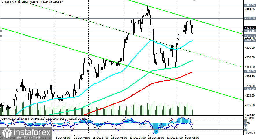 В альтернативном сценарии цена продолжит коррекционное снижение, пробьёт уровень поддержки 4414.00 и углубится в зону краткосрочного медвежьего рынка, направившись в сторону важных уровней поддержки 4294.00 (ЕМА200 на 4-часовом графике), 4229.00 (ЕМА50 на дневном графике), вблизи которых, учитывая общий восходящий тренд цены, можно вновь выстраивать отложенные позиции на покупку, рассчитывая на отбой и возобновление роста.