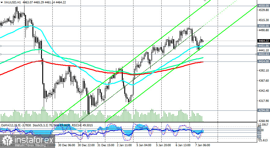 При этом откат к уровням поддержки 4452.00, 4432.00, 4414.00 (200-периодные скользящие средние на 15-минутном, 30-минутном, 1-часовом графиках) предоставляет дополнительные возможности для входа в длинные позиции по более выгодным ценам.