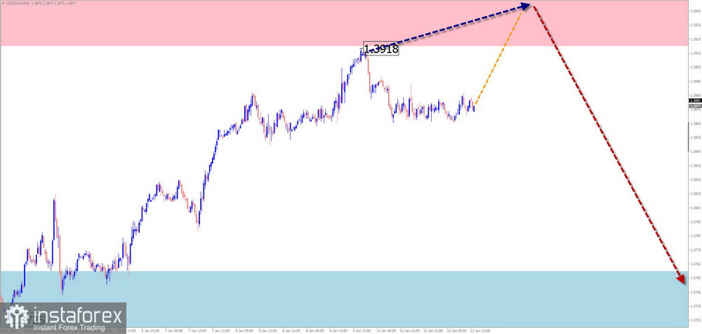 Основное направление ценовых колебаний мажорной пары канадского доллара с февраля прошлого года задаётся алгоритмом нисходящей волны. Незавершённый участок по основному курсу стартовал 5 ноября. С конца декабря развивается встречная волновая конструкция, не выходящая за рамки коррекции.