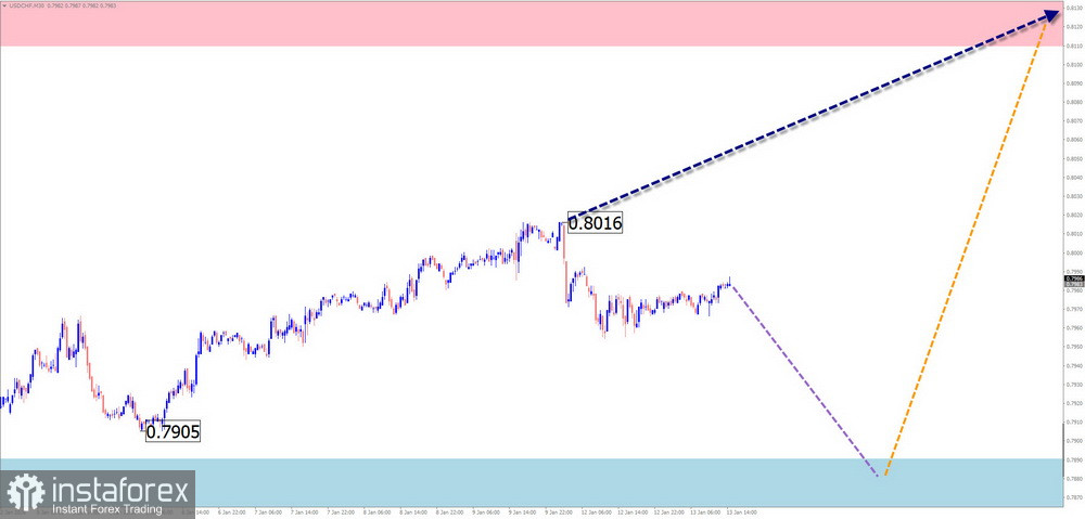 Недельный прогноз по упрощенному волновому анализу GBP/USD, AUD/USD, USD/CHF, EUR/JPY, AUD/JPY, EUR/CHF от 13 января