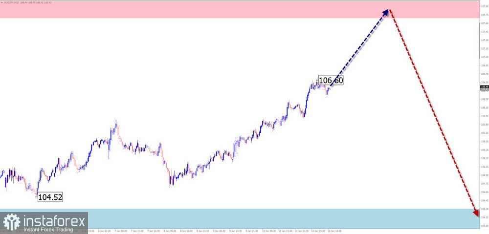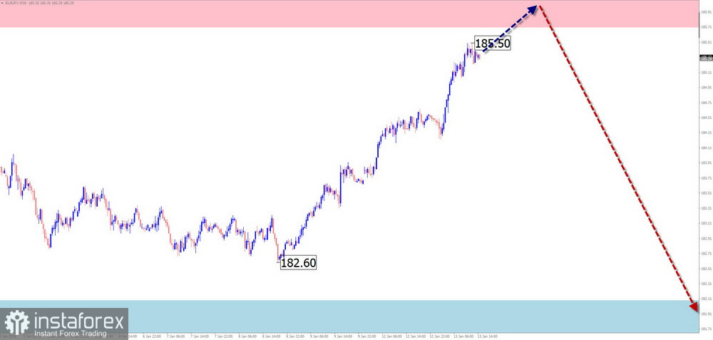 Продажи: станут возможными после появления в районе зоны сопротивления подтверждённых сигналов разворота.