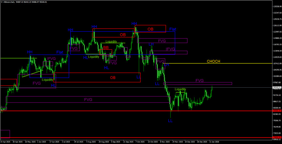 Торговые рекомендации по Биткоину(Bitcoin) на 14 января по системе ICT.