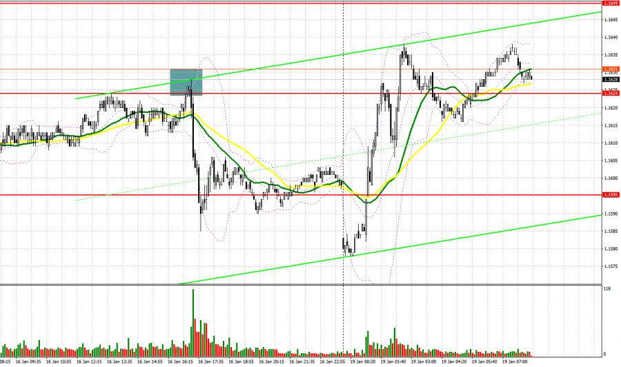 В прошлую пятницу была образована лишь одна точка входа в рынок. Давайте посмотрим на 5-минутный график и разберемся с тем, что там произошло. В своем утреннем прогнозе я обращал внимание на уровень 1.1624 и планировал от него принимать решения по входу в рынок. Рост в район 1.1624 произошло, но до теста этого уровня дело так и не дошло, так что я остался без сделок. Во второй половине дня мы все же обновили этот уровень, что вместе с ложным пробоем привело