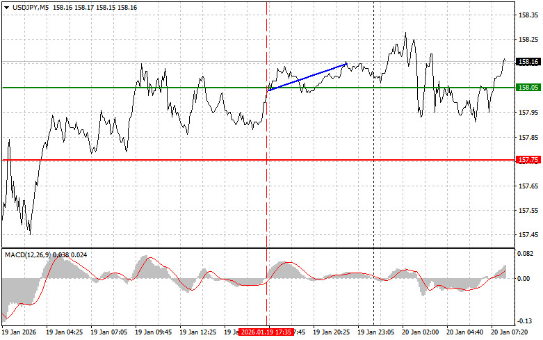 Разбор сделок и советы по торговле японской иенойТест цены 158.05 совпал с моментом, когда индикатор MACD только начинал движение вверх от нулевой отметки, что стало подтверждением правильной точки входа на покупку доллара. Но до крупного роста пары дело так и не дошло. Несмотря на падение доллара против ряда рисковых активов, в паре с японской иеной американская валюта чувствует себя более-менее уверенно. Сейчас широко распространено мнение, что Банк Японии в пятницу сохранит свою ключевую процентную ставку без изменений, что не окажет