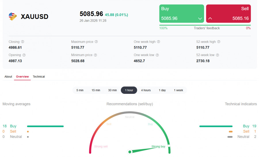 *) см. также: Торговые индикаторы InstaForex по XAU/USD Пара XAU/USD 6-й торговый день подряд обновляет рекордные максимумы, уверенно торгуясь вблизи психологически важного рубежа 5100.00 в первой половине европейской торговой сессии и демонстрируя устойчивый спрос на золото со стороны инвесторов, центральных банков и биржевых фондов. Это беспрецедентное ралли является не случайным всплеском, а следствием мощной конвергенции фундаментальных факторов, превративших золото в главный актив-убежище современности. Ключевым фактором роста остаётся сочетание геополитической неопределённости, слабости доллара США и ожиданий