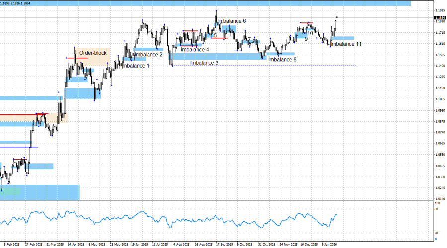 Пара EUR/USD выполнила разворот в пользу европейской валюты на прошлой неделе и начала новый процесс роста. Как я и предполагал, любые атаки медведей имеют крайне ограниченный потенциал, а «бычий» тренд сохраняется. На «бычьем» тренде основное внимание трейдеров должно быть направлено на «бычьи» паттерны и сигналы на покупку. На прошлой неделе был образован очередной «бычий» имбаланс и практически сразу же – сигнал на покупку. Таким образом, трейдеры имели очередную прекрасную возможность для открытия сделок, которые уже находятся в прибыли около 120-130