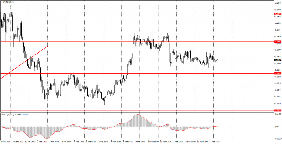 Разбор сделок пятницы: 1Н график пары EUR/USD. Валютная пара EUR/USD в течение пятницы продолжала торговаться исключительно вбок с минимальной волатильностью. Напомним, что в среду в Штатах были опубликованы важные отчеты по рынку труда и безработице. Нельзя сказать, что рынок их проигнорировал полностью, но в то же время реакция рынка была странной и неоднозначной, как и сами отчеты. Если январское значение безработицы и Нонфармов оказались достаточно позитивными, то значение за весь 2025 год было пересмотрено на