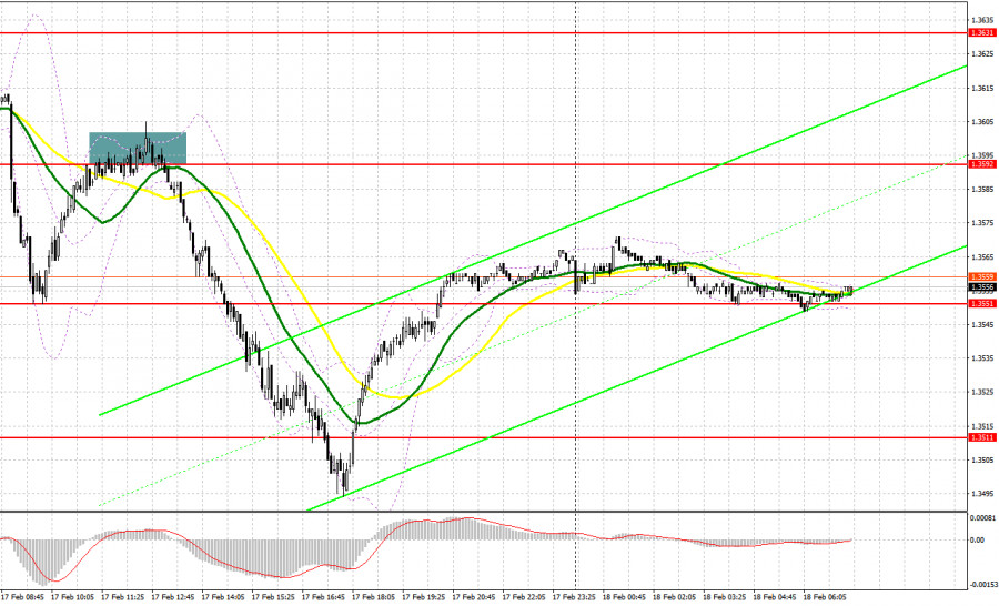 Вчера было образовано несколько точек входа в рынок. Давайте посмотрим на 5-минутный график и разберемся с тем, что там произошло. В своем утреннем прогнозе я обращал внимание на уровень 1.3551 и планировал от него принимать решения по входу в рынок. Снижение и формирование ложного пробоя в районе 1.3551 привели к точке входа на покупку фунта, что вылилось в рост пары более чем на 40 пунктов. Во второй половине дня активные действия продавцов в области 1.3592 привели к хорошей точке входа