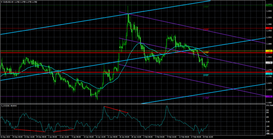 Валютная пара EUR/USD в течение пятницы торговалась с минимальным повышением, но в целом волатильность была достаточно средней. Мы уже говорили о том, что рынок фактически проигнорировал все события пятницы, что очень и очень странно. Однако за последние 2 недели мы увидели достаточно странных движений. Если быть точнее, то достаточно странного роста американской валюты. В пятницу стало известно, что Верховный суд США признал нелегальными большую часть торговых пошлин Дональда Трампа, на что сам президент США ответил, что все пошлины