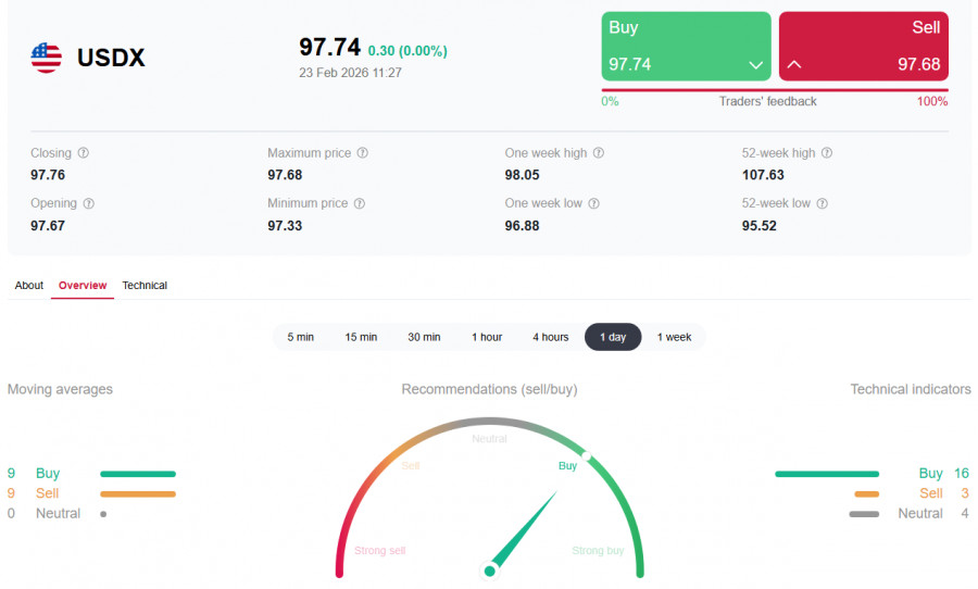 *) см. также: Торговые индикаторы InstaForex по USDX Доллар США демонстрирует смешанную динамику и повышенную волатильность на фоне сочетания политических и макроэкономических факторов в первой половине сегодняшнего торгового дня, торгуясь в районе 97.60 во фьючерсах на индекс USDX (показатель стоимости доллара по отношению к корзине из шести ведущих валют (EUR, JPY, GBP, CAD, SEK, CHF) перед началом американской торговой сессии и восстанавливаясь после гэпа вниз на открытии сегодняшнего торгового дня к отметке 97.35 с тестом на пробой