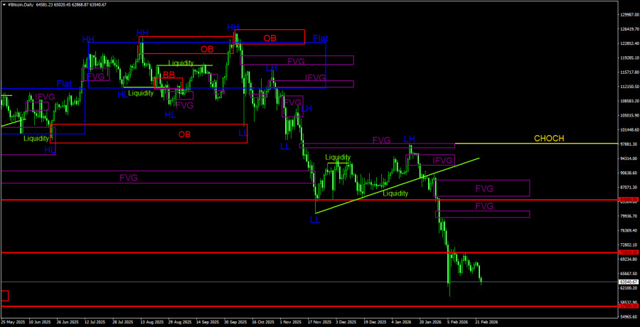 Торговые рекомендации по Биткоину(Bitcoin) на 24 февраля по системе ICT.