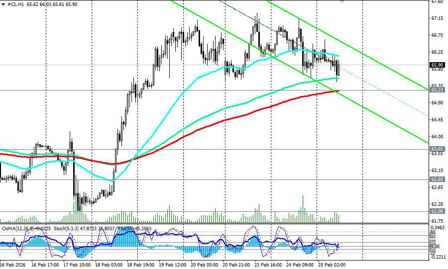 Сегодняшний отчет EIA станет промежуточным драйвером перед завтрашними ирано-американскими переговорами: подтверждение данных API усилит давление на цены, тогда как неожиданно низкий рост запасов может поддержать «быков». Инвесторам же следует готовиться к периоду экстремальной волатильности, где каждый заголовок из Женевы будет двигать рынок сильнее, чем фундаментальные показатели, отметили мы в нашем сегодняшнем фундаментальном анализе и обзоре «Нефть WTI: на перепутье геополитики и фундаментальных факторов». С технической же точки зрения, фьючерсы на нефть марки WTI (CL в торговом терминале) остаются торговаться