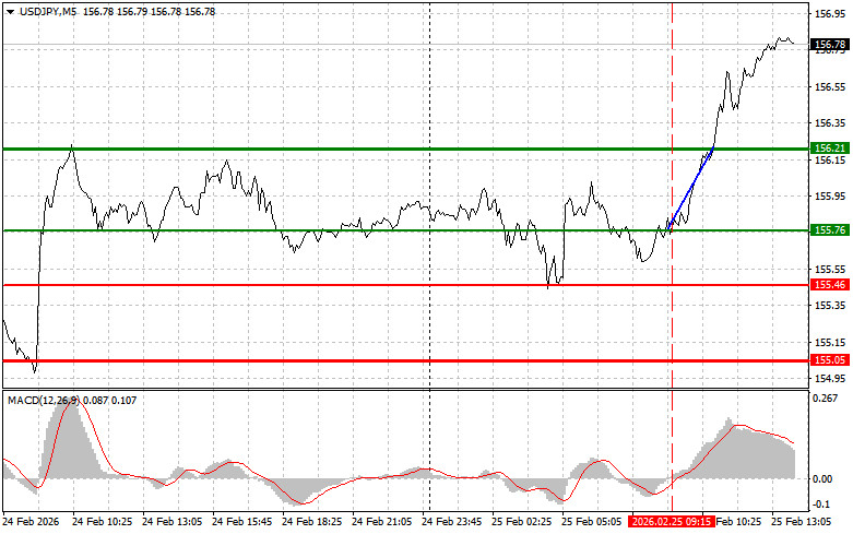 Разбор сделок и советы по торговле японской иенойТест цены 155.76 пришелся на момент, когда индикатор MACD только начинал движение вверх от нулевой отметки, что стало подтверждением правильной точки входа на покупку доллара. В результате пара выросла на 50 пунктов.Во второй половине дня ожидается волна выступлений ключевых фигур Федеральной резервной системы США, которые, несомненно, вызовут повышенный интерес у участников финансовых рынков. Среди выступающих — Томас Баркин, Джеффри Шмид и Альберто Мусалем. Особое внимание будет приковано к любым заявлениям относительно уровня инфляции