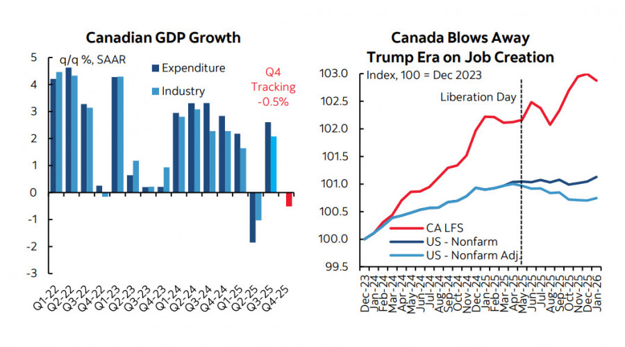 Прошедшая неделя оказалась скудной на макроэкономические данные, которые могли бы скорректировать прогнозы по канадскому доллару. Розничные продажи снизились в декабре на 0.4% м/м, что оказалось немного лучше прогноза -0.5%, в реальном выражении объемы остались прежними, что указывает на некоторое снижение цен. Надо признать, что четвертый квартал в Канаде оказался слабым, темпы роста реального потребления 0.6% г/г, что ниже тренда, и не ожидается, что в 1 квартале ситуация может заметно улучшиться. Отмечается сильное давление на сектор автомобилестроения, в первую