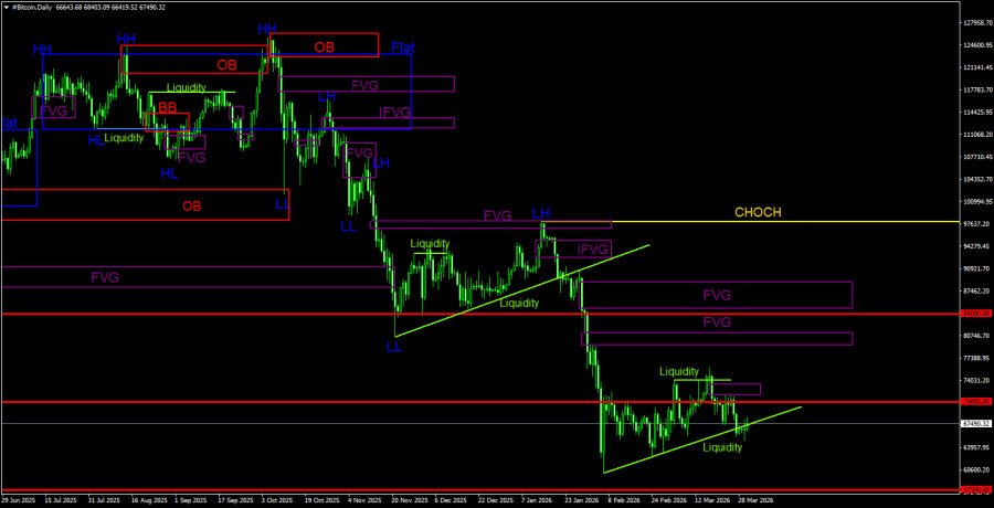 Торговые рекомендации по Биткоину(Bitcoin) на 31 марта по системе ICT