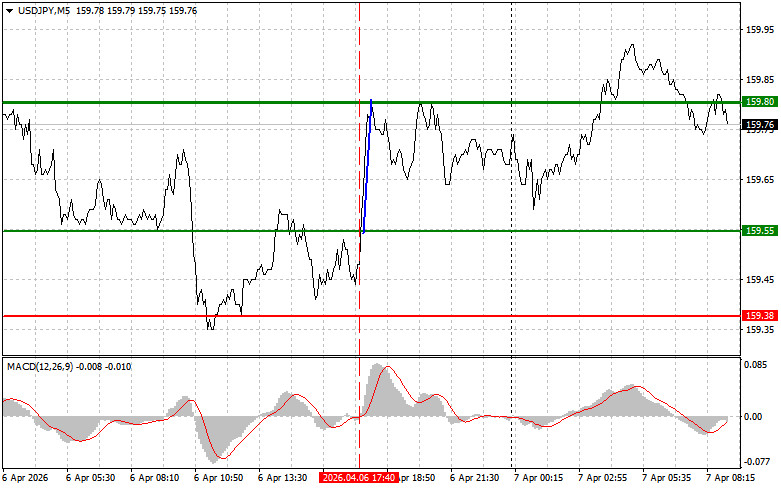 Разбор сделок и советы по торговле японской иенойТест цены 159.55 пришелся на момент, когда индикатор MACD только начинал движение вверх от нулевой отметки, что стало подтверждением правильной точки входа на покупку доллара. В результате пара выросла в район целевой отметки 159.80.Иена отреагировала падением в паре с долларом на новости о том, что японские домохозяйства сокращали свои расходы третий месяц подряд, даже после того, как реальная заработная плата стала положительной, что подчеркивает нестабильное состояние внутреннего спроса. Согласно данным, расходы домохозяйств с