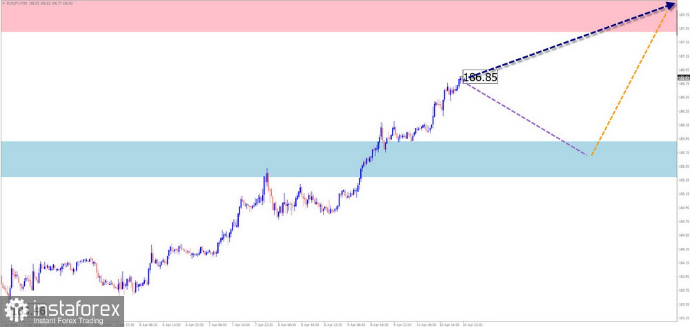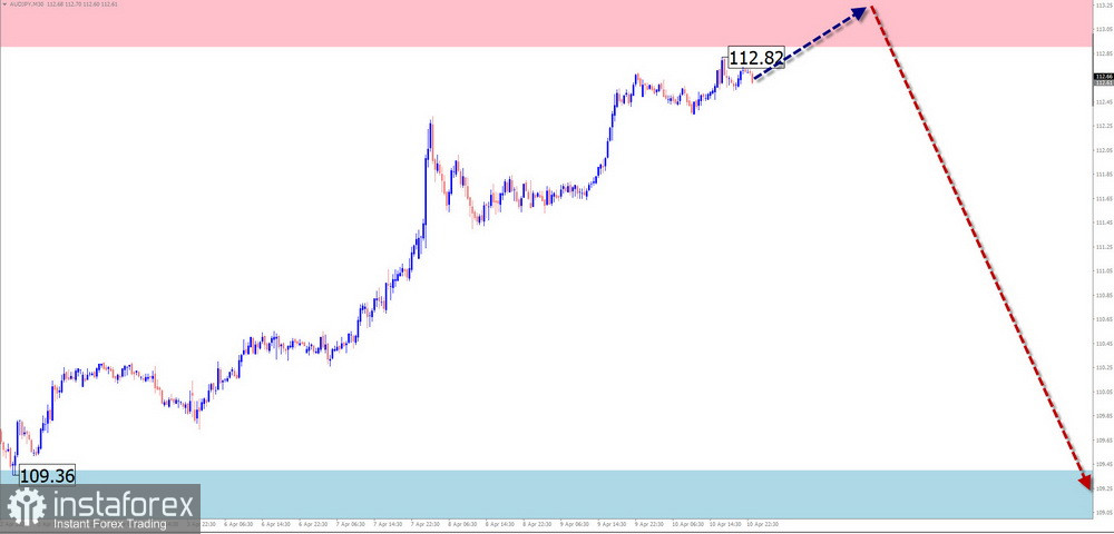 Продажи: станут возможными после появления в районе сопротивления соответствующих подтверждённых сигналов разворота.