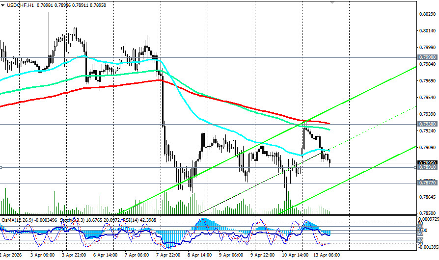 Эскалация конфликта и рост цен на нефть толкают доллар вверх как защитный актив и усиливают «ястребиные» ожидания по ставке ФРС. С другой стороны, формально сохраняющееся перемирие и надежды на дипломатию не позволяют доллару реализовать свой полный потенциал, а угрозы интервенций со стороны SNB ограничивают рост пары сверху, отметили мы в нашем сегодняшнем фундаментальном анализе и обзоре «USD/CHF: от эйфории перемирия к реальности блокады». Между тем, USD/CHF остаётся торговаться в зоне медвежьего рынка, среднесрочного - ниже ключевого уровня сопротивления 0.7990