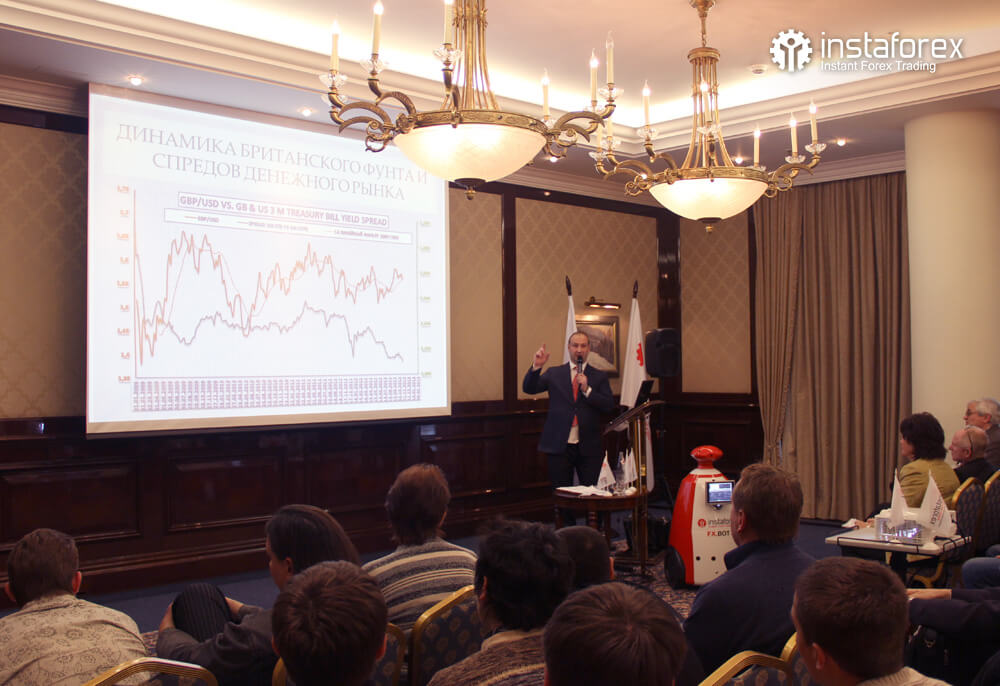 Самым долгожданным для большинства присутствующих было выступление аналитика Глеба Кабанова на тему: «Динамика рынка облигаций и ее влияние на рынок Forex». Наибольшее же количество вопросов было к Виктору Першикову – преподавателю образовательных курсов санкт-петербургского офиса компании ИнстаФорекс – по-поводу применения комплексного технического анализа Фибоначчи. Обсуждение докладов продолжалось даже во время бесплатных кофе-брейков от компании ИнстаФорекс.