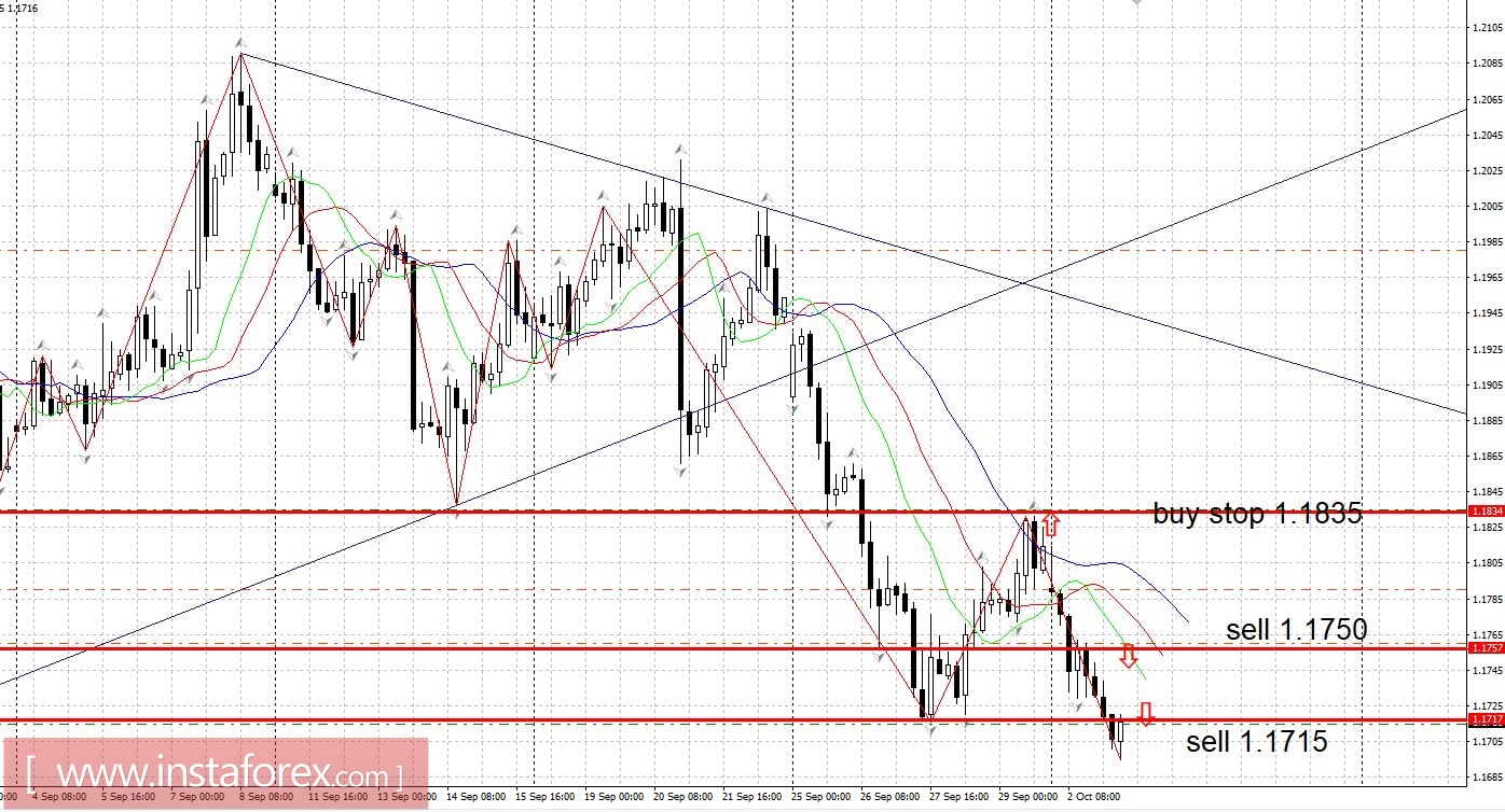 Si no tiene posiciones, se recomienda vender EURUSD desde 1.1715 o niveles superiores, por ejemplo desde 1.1750.