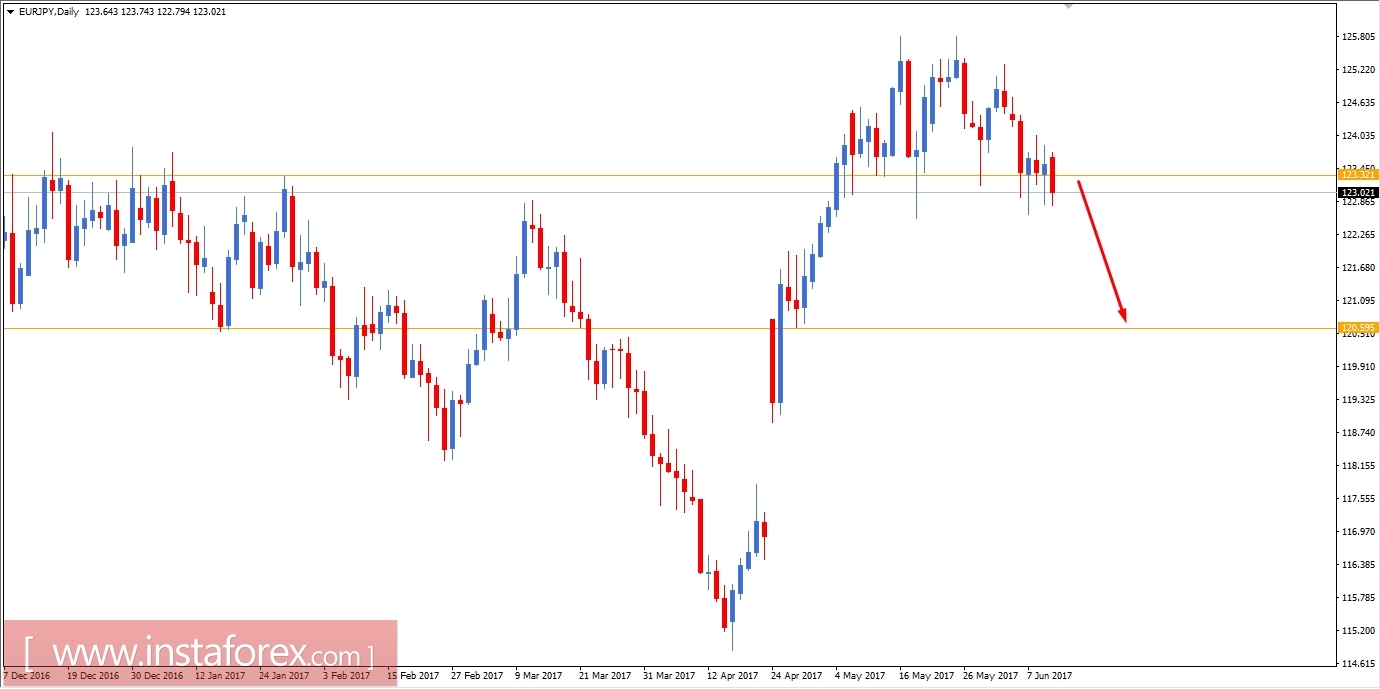 El EUR/JPY actualmente sigue corrigiéndose al borde de romper el área de soporte de 123.30-50. Una buena cantidad de volatilidad tiene que impactar el mercado desde la semana pasada ya que el precio procura romper debajo del área de soporte, pero falló muchas veces en hacerlo. Recientemente el JPY ha sido muy fuerte que EUR si el índice manufacturero BSI de hoy sale mejor de lo esperado de 1.5 que previamente estuvo en 1.1, observaríamos más ganancia en el lado JPY hoy. Pese los informes económicos negativos recientes del JPY, la divisa se las arregló en ganar consistentemente y se esperó que un resultado positivo en los informes recientes provea más impulso a las ganancias. En el lado de la Eurozona, hoy el informe final francés de nóminas no agrícolas se publicará, el cual se espera sin cambios en 0.3%, el WPI alemán se espera que baje a 0.2% desde 0.3% previamente. Se espera que se publique el sentimiento económico alemán ZEW con cifra ligeramente mejor en 21.6 que estuvo en 20.6 y se espera también el sentimiento económico ZEW de la eurozona con un incremento a 37.2 desde 35.1 previamente. Una buena cantidad de informes económicos se publicará en la eurozona hoy y se espera un buena cantidad de volatilidad en el mercado. Ya que el mercado actualmente es volátil debido a los informes de económicos mixtos de ambas divisas del par. De modo que algun borde sobre los informes económicos haoy proveerá una oportunidad de ganar más en cada lad. Pese a que se espera que el JPY tenga una mano superior sobre el EUR esta semana debido a l publicación de política monetaria JPY y la Tasa de política de Japón se publicará el viernes esta semana.