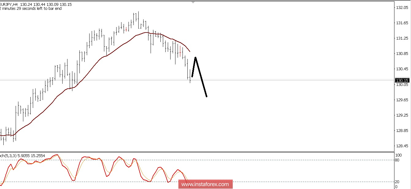 If we look at the 4-hour chart, the EUR/JPY pair seems to trade lower. This has already been confirmed by the price moving below the 21-period Moving Average. However, in a few moments the pair is going to make the upward correction at least to test the dynamic resistance at the 21-period Moving Average before the price goes down again.