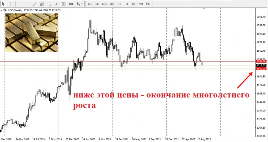 С медвежьей стороны аналитики отмечают, что золото колеблется на очень сомнительном уровне. Если цены на золото упадут, ниже 1685 долларов, это может сигнализировать об окончании многолетнего бычьего тренда.