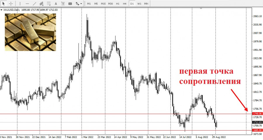 Несмотря на то что рыночные аналитики в отношении золота в ближайшей перспективе настроены оптимистично, они не ждут прорыва. Марк Чендлер, управляющий директор Bannockburn Global Forex, сказал, что $1740 остается первой точкой сопротивления, за которой он наблюдает. Добавив, что на данный период времени золото скорее рискованный актив, чем актив убежище от инфляции.