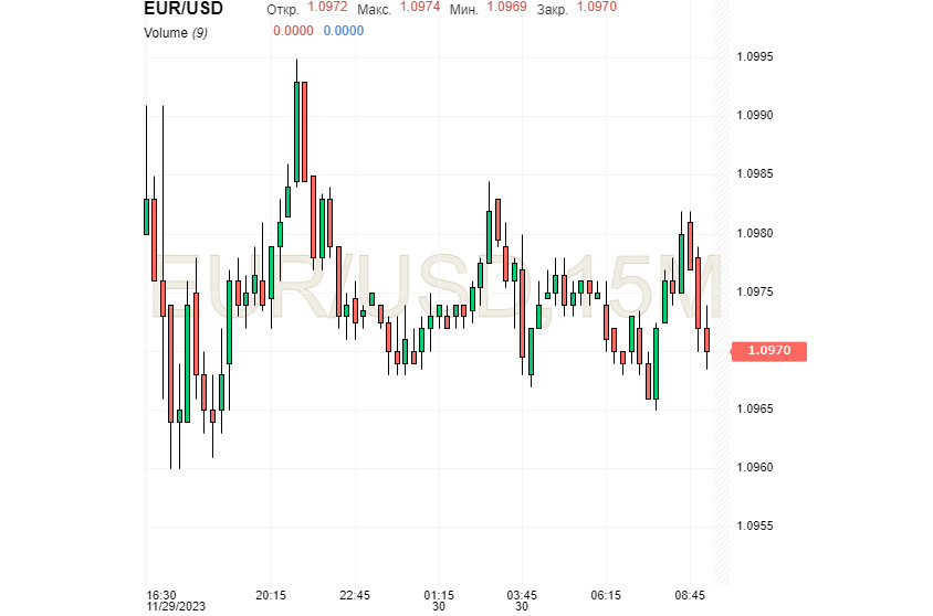 У четвер, 30 листопада, пара EUR/USD торгувалася по 1,0970, намагаючись надолужити втрачене. Раніше в моменті тандем підіймався до діапазону 1,0990-1,1000, але потім здав свої позиції.