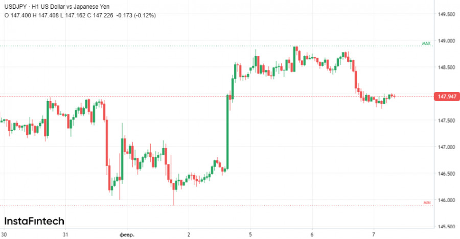 За підсумками вчорашніх торгів пара USD/JPY впала на 0,49%, до 147,905 і цей відкат зовсім не схожий на корекційне зниження.