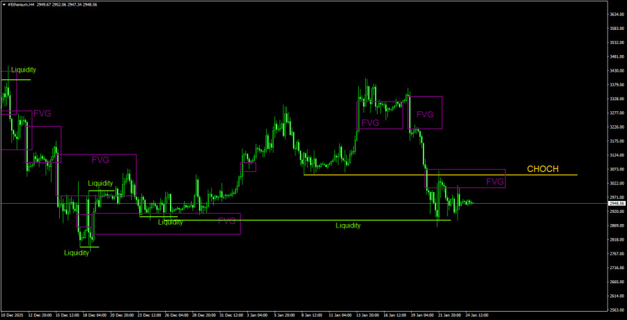 Торговые рекомендации по Эфиру(Ethereum) на 25 января по системе ICT.