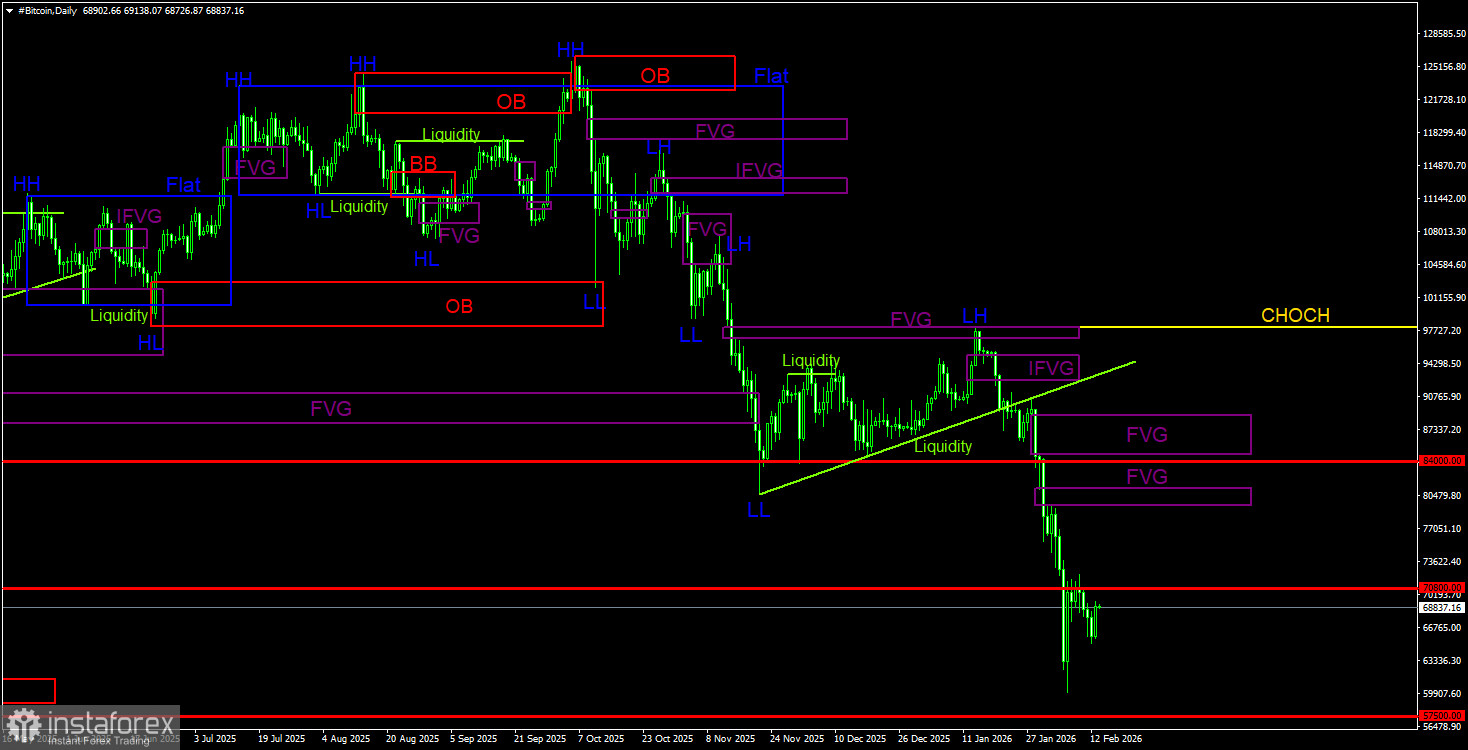 Торговые рекомендации по Биткоину(Bitcoin) на 14 февраля по системе ICT.