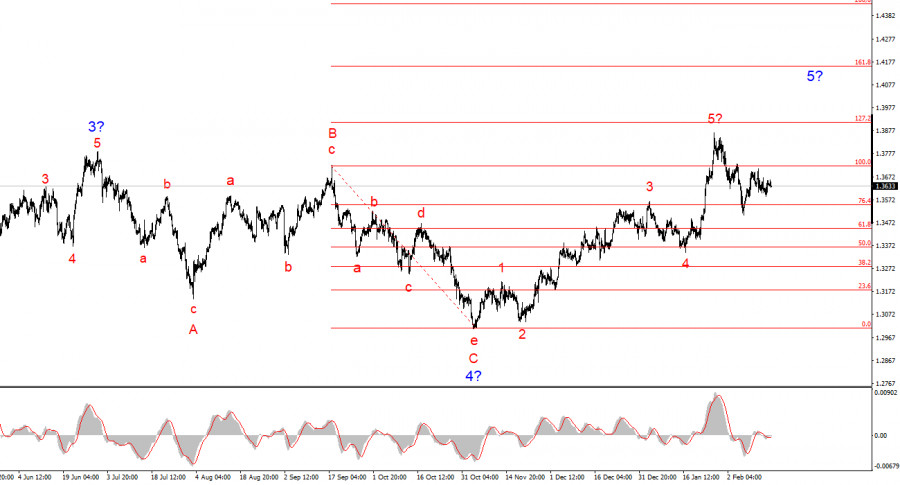 Волновая картина инструмента GBP/USD имеет вполне понятный вид. Пятиволновая повышательная структура завершила свое построение, но глобальная волна 5 может принять гораздо более протяженный вид. Я считаю, что в ближайшее время может наблюдаться построение коррекционного набора волн, после чего возобновиться построение восходящего тренда. Следовательно, в ближайшие недели я могу посоветовать искать возможности для новых покупок. На мой взгляд, при Дональде Трампе фунт стерлингов имеет все шансы подняться до 1,45-1,50$. Сам Трамп приветствует снижение доллара, а ФРС имеет возможность уже на следующем заседании вновь понизить ставку.