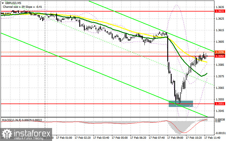 Рост уровня безработицы в Великобритании до 5,2%, что оказалось выше прогнозов экономистов, способствовал падению британского фунта, которое было усилено снижением среднего заработка в Великобритании в декабре прошлого года. Все это увеличило аргументы в пользу дальнейшего снижения процентных ставок Банком Англии. Далее нас ждут недельные данные по занятости от ADP, производственный индекс Empire Manufacturing, а также выступления членов FOMC Майкла С. Барра и Мэри Дейли. Жесткий тон политиков быстро вернет давление на британский фунт. В таком случае покупателям придется вновь рассчитывать на ближайшую поддержку 1.3551. Только формирование там ложного пробоя по аналогии с тем, что я разобрал выше, даст точку входа в длинные позиции в расчете на восстановление к уровню 1.3592. Прорыв с обратным тестом сверху вниз этого диапазона приведут уже к новой точке входа в длинные позиции с перспективой выхода на 1.3631. Самой дальней целью окажется область 1.3667, где собираюсь фиксировать прибыль. При сценарии снижения GBP/USD и отсутствия активности со стороны быков на уровне 1.3551, давление на пару существенно возрастёт, что вернут рынку медвежий характер. В таком случае лишь формирование ложного пробоя в районе 1.3511 будет подходящим условием на открытие длинных позиций. Покупать GBP/USD сразу на отскок собираюсь от поддержки 1.3483 с целью коррекции 30-35 пунктов внутри дня.