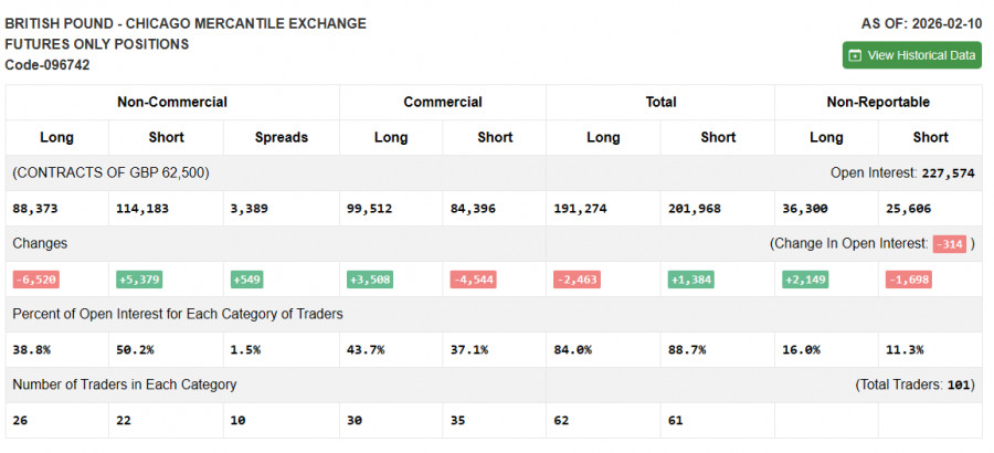 В COT-отчете (Commitment of Traders) за 10 февраля наблюдался рост коротких позиций и сокращение длинных. Видим, что разворот Банка Англии в сторону более мягкой денежно-кредитной политики, который может произойти в ближайшее время, явно давит на настроения покупателей фунта. Данные по росту ВВП и рынку труда могут склонить чашу весов в ту или иную сторону, так что на них в ближайшее время необходимо обращать пристальное внимание. В последнем COT-отчете указано, что длинные некоммерческие позиции сократились на 6 520 до уровня 88 373, тогда как короткие некоммерческие увеличились на 5 379 до уровня 114 183. В итоге спрэд между длинными и короткими позициями вырос на 549.