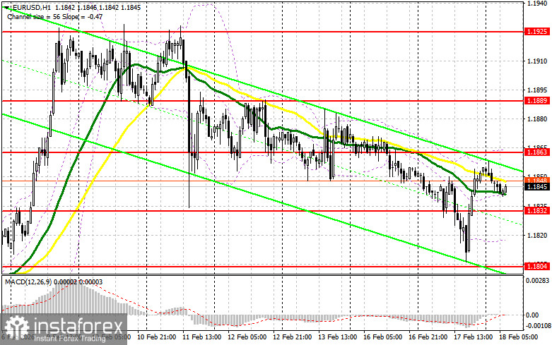 Продавцы вчера себя проявили довольно активно, но сохранить контроль над рынком не удалось. В случае дальнейшего роста пары в продолжение вчерашней тенденции, медведям вновь придется защищать ближайшее сопротивление 1.1863. Упустив его, можно рассчитывать уже на развитие бычьего рынка. Только формирование ложного пробоя в районе 1.1863 даст точку входа в короткие позиции с целью движения к поддержке 1.1832. А вот прорыв и закрепление ниже 1.1832, а также обратный тест снизу вверх, позволят добиться более крупной распродажи евро. Это станет дополнительным вариантом на открытие коротких позиций с движением в район 1.1804. Самой дальней целью выступит область 1.1769, где буду фиксировать прибыль. В случае движения вверх EUR/USD, а также отсутствия активных действий медведей в районе 1.1863, евро получит шанс на дальнейшее восстановление. В таком случае короткие позиции лучше всего отложить до более крупного уровня 1.1889. Продавать там будут только после неудачного закрепления. Открывать короткие позиции сразу на отскок я планирую от 1.1925 с целью нисходящей коррекции в 30-35 пунктов.