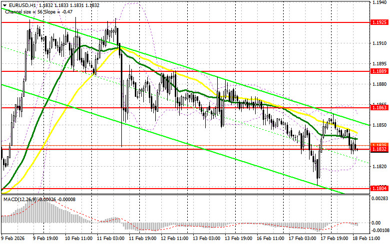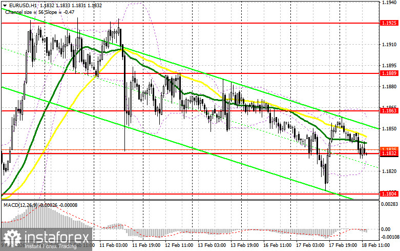 Французская инфляция, совпавшая с прогнозами экономистов, не сумела оказать поддержку европейской валюте в первой половине дня. Во второй половине дня достаточно много значимых событий. Все начнется с данных по изменению объема заказов на товары долгосрочного пользования, изменению объема промышленного производства и объема выданных разрешений на строительство в США, а закончится выступлением члена FOMC Мишель Боуман и публикацией протокола январского заседания ФРС. Хорошая статистика, по аналогии со вчерашним днем, вернет спрос на американский доллар. При медвежьей реакции рынка лишь формирование ложного пробоя в районе поддержки 1.1832 по аналогии с тем, что я разбирал выше, даст точку входа в длинные позиции в расчете на восстановление евро и тест сопротивления 1.1863. Прорыв и обратный тест этого диапазона сверху вниз станут подтверждением правильной точки вход с движением к области 1.1889. Самой дальней целью будет уровень 1.1925, где буду фиксировать прибыль. При варианте снижения EUR/USD и отсутствия активности в районе 1.1832, евро может просесть более крупно. Это приведет к снижению в район 1.1804. Лишь после формирования там ложного пробоя собираюсь действовать на покупку евро. Открывать длинные позиции сразу на отскок планирую от 1.1769 с целью восходящей коррекции в 30-35 пунктов внутри дня.