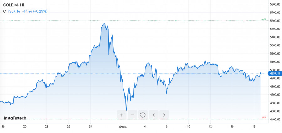 Золото обвалилось более чем на 2,5% до минимума $4 858 за унцию, серебро снизилось примерно на 4,6% до около $73 за унцию. Судя по всему, инвесторы выходят из защитных активов, что отражается и на акциях добывающих компаний и биржевых фондах.
