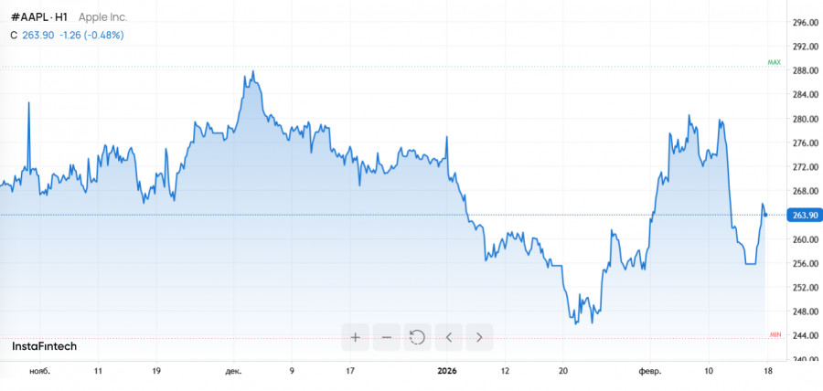 Во вторник акции Apple подскочили на 3,2%, существенно опередив технологический сектор в целом. Инвесторы все активнее ищут защитные бумаги на фоне растущих сомнений относительно окупаемости масштабных инвестиций в ИИ. Такое перераспределение средств усилило недавнюю тенденцию: пока многие технологические компании объявляют об огромных капитальных расходах и вызывают давление на сектор, Apple идёт своим путём и выигрывает в глазах нервничающих инвесторов.