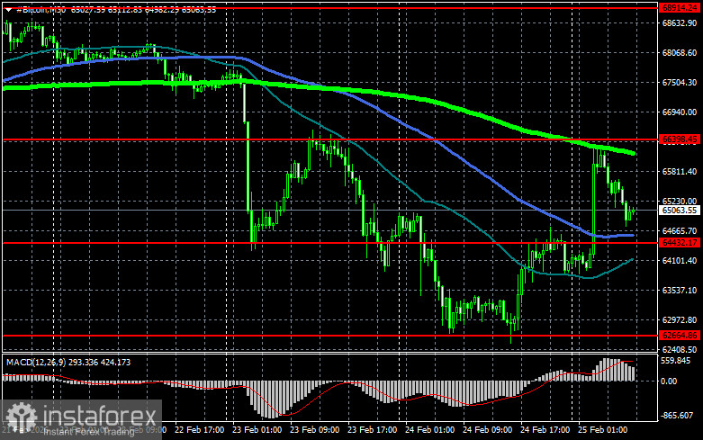 Что касается технической картины Bitcoin, то покупатели сейчас нацелены на возврат уровня $66 400, который открывает прямую дорогу на $68 900, а там уже и рукой подать до уровня 70 600. Самой дальней целью выступит максимум в районе $71 600, преодоление которого будет означать попытки возврата бычьего рынка. В случае падения биткоина покупателей жду на уровне $64 400. Возврат торгового инструмента под эту область может быстро свалить BTC в район $62 600. Самой дальней целью будет область $61 100.