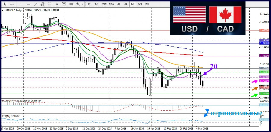 Одновременно резкий скачок цен на нефть усилил инфляционные риски и вынудил инвесторов пересмотреть ожидания по срокам следующего снижения процентной ставки Федеральной резервной системы США, продолжая оказывать давление на доходности казначейских облигаций США. На этом фоне доллар получает дополнительную поддержку, что, в свою очередь, выступает ключевым фактором в пользу пары USD/CAD.