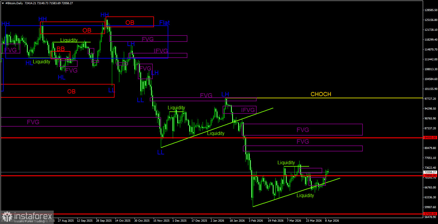 Торговые рекомендации по Биткоину(Bitcoin) на 10 апреля по системе ICT