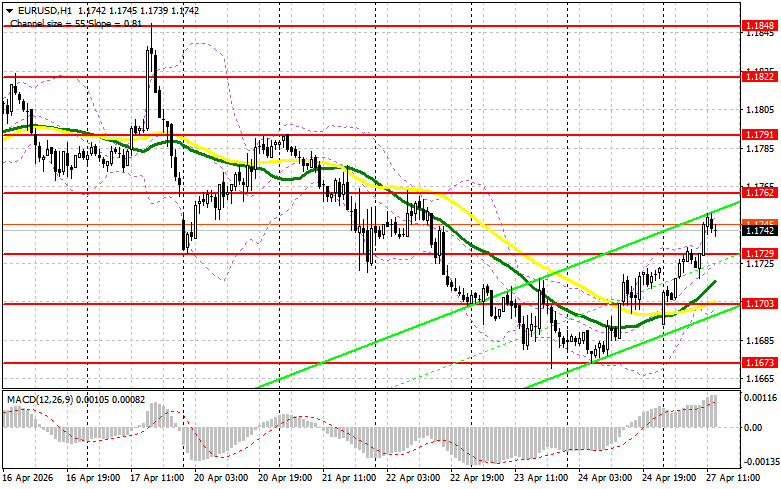 Данные о резком снижении индекса потребительского климата Германии от GfK оказали совсем минимальное давление на евро, после чего рост продолжился. Очевидно, трейдеров не заботит тот факт, что экономика еврозоны продолжает демонстрировать слабые сигналы, а ВВС США резко нарастили переброску сил на Ближний Восток, что может привести к очередной эскалации войны с Ирном уже в ближайшее время. Учитывая, что во второй половине дня нет вообще никакой статистики по США, на таком тонком рынке действовать нужно крайне осторожно. В случае снижения пары лишь формирование ложного пробоя в районе новой поддержки 1.1729 будет точкой входа в длинные позиции в расчете на восстановление евро к уровню 1.1762. Прорыв и обратный тест этого диапазона сверху вниз станут подтверждением правильной точки вход с движением к области 1.1791, что укажет на возврат бычьего рынка. Самой дальней целью будет уровень 1.1822, где буду фиксировать прибыль. При варианте дальнейшего снижения EUR/USD и отсутствия активности в районе 1.1729, давление на евро вернется. Это приведет к снижению в район 1.1703. Лишь после формирования там ложного пробоя собираюсь действовать на покупку евро. Открывать длинные позиции сразу на отскок планирую от 1.1673 с целью восходящей коррекции в 30-35 пунктов внутри дня.