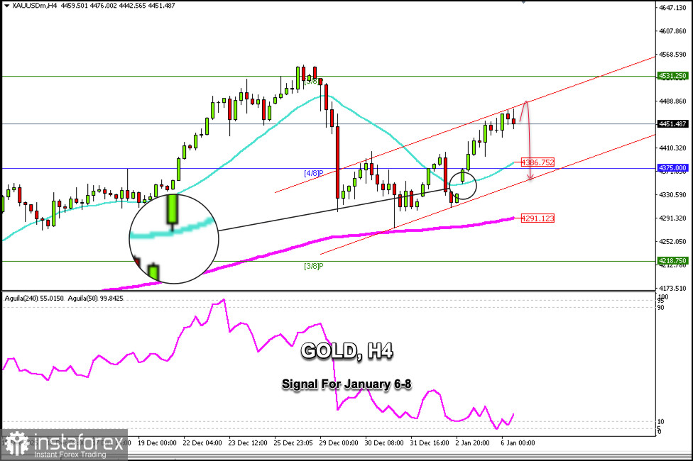 Tín hiệu giao dịch cho VÀNG từ ngày 6-8 tháng 1, 2026: bán dưới mức $4,485 (R_1 - 4/8 Murray)