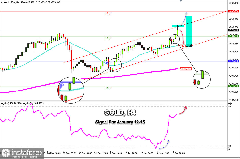 Tín hiệu giao dịch cho VÀNG từ ngày 12-15 tháng 1, 2026: bán dưới mức $4,600 (21 SMA - GAP)
